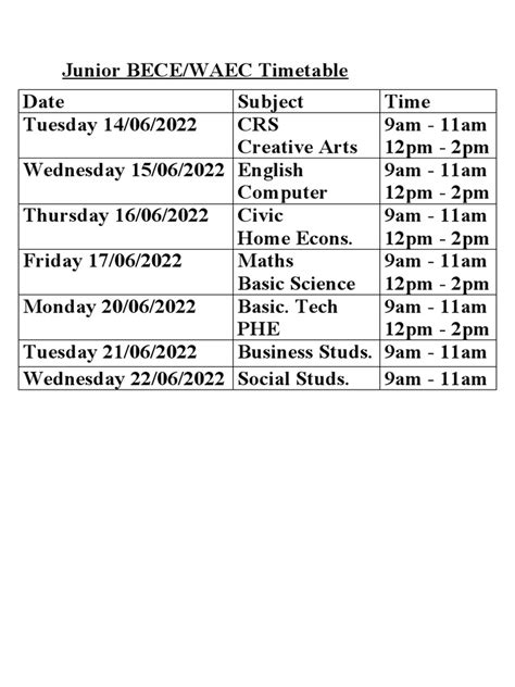 Download Ebook junior waec 2014 timetable Free E-Book Apps PDF